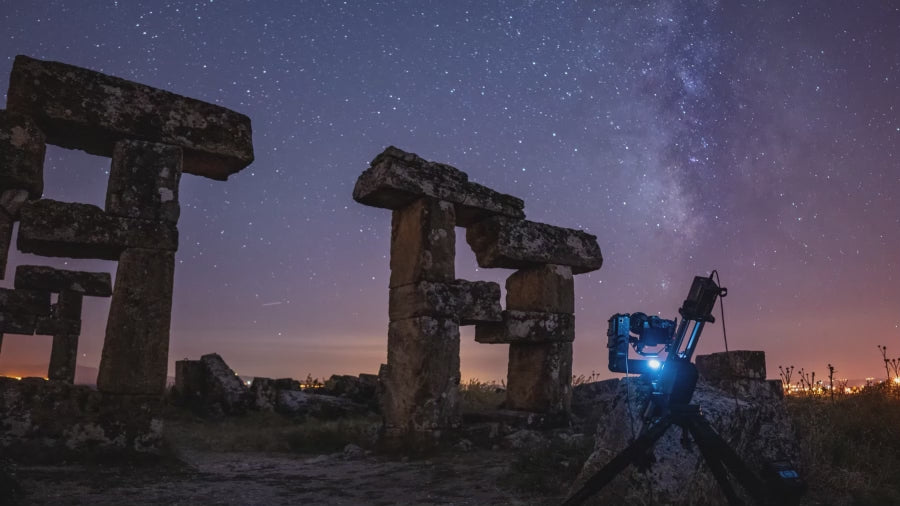 Astro time-lapse is where filmmaking meets astronomy. Tracking stars across the sky demands not just timing, but understanding the cosmos — predicting rotation, mapping constellations, and balancing light pollution with exposure. With motion control, every arc of the Milky Way becomes measurable, every hour compressed into seconds of cosmic choreography.